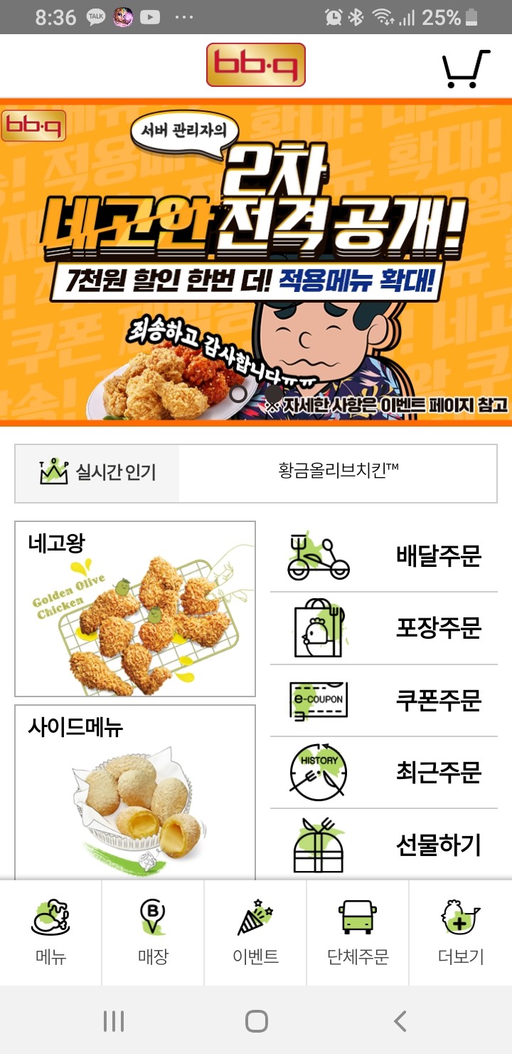 1달간 진행되는데 시작 직후에는 주문이 몰려서 주문하면 2시간 넘게 기다려야 했습니다. 당시에는 비비큐 네고왕 이벤트를 좀 미루고 있었는데, 오늘 드디어 주문에 성공했네요~ 이제 주문 방법에 대해 알려드립니다~